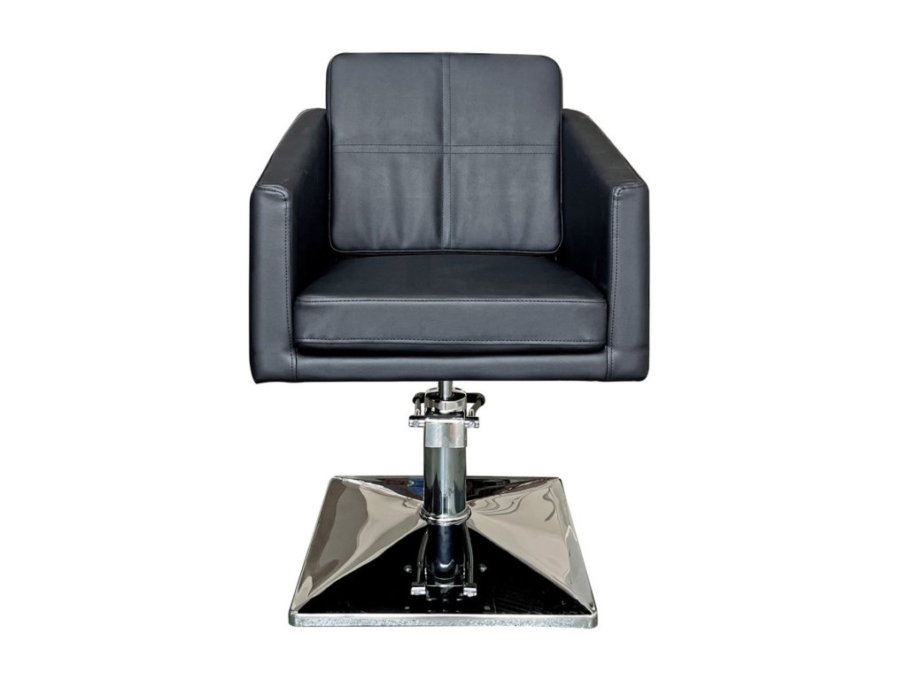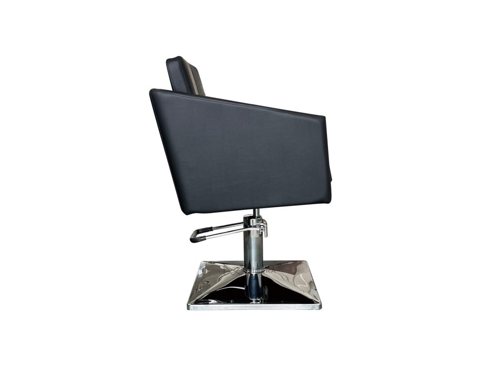 Kadeřnické křeslo CUBE CHROME - matná černá je stylový a praktický kus nábytku, který se dokonale hodí do každého moderního kadeřnického salonu. Vyniká jednoduchým a elegantním designem, kvalitním zpracováním a komfortem pro klienta i kadeřníka.