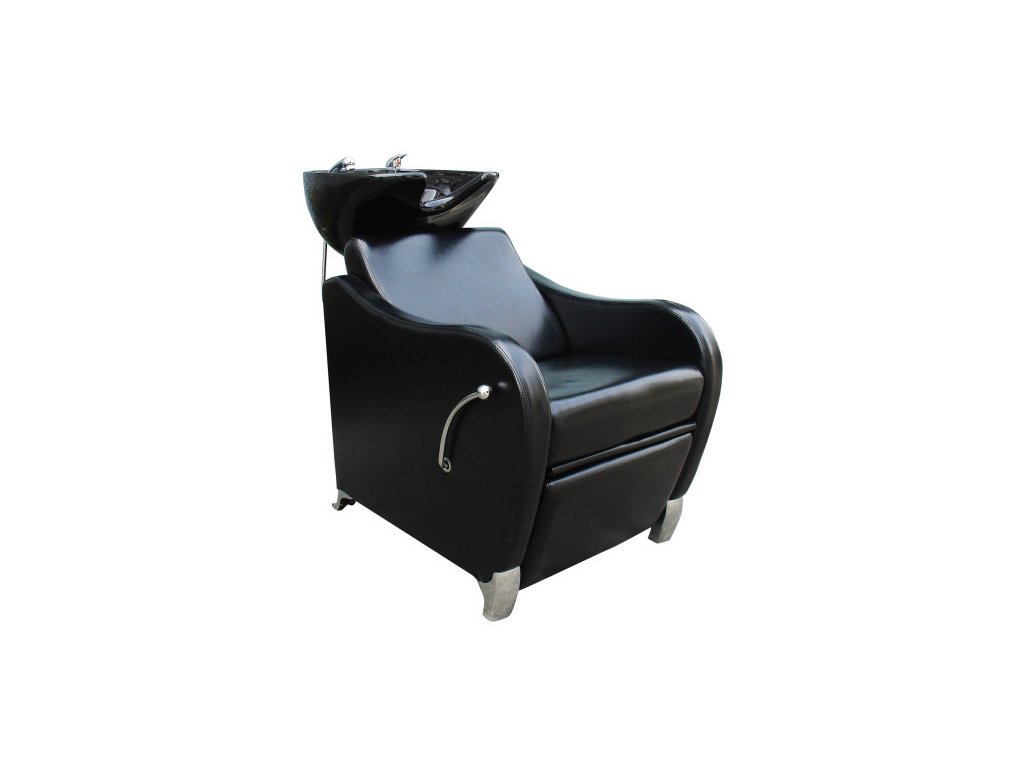 Komfortní mycí box v robustním stylu s hlubokým keramickým umyvadlem, kovovými nohami a čalouněnými područkami. Sedadlo je měkké a pohodlné. Ideální pro rušné kadeřnické salony nebo holičství.