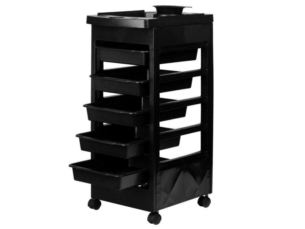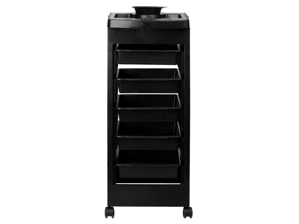 Kadeřnický asistent HAIR SYSTEM 8-5 i přes nízkou cenu splňuje všechny základní požadavky. Díky kolečkům je nábytek mobilní a má pět výsuvných kyvet. Jeho styl snadno zapadne do výzdoby vašeho obývacího pokoje.