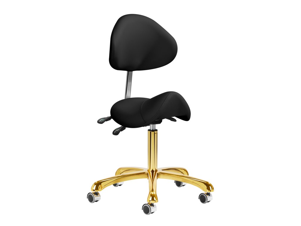 Giovanni je značka specializující se na praktické vybavení pro kosmetické salony a salony krásy, která nabízí mimo jiné kosmetický nábytek a napařovače. Vysoká odolnost, ergonomie a funkčnost zajišťují pohodlí uživatelů a pracovní komfort. Pohodlný kosmetický nábytek: Praktická kosmetická stolička Giovanni 1004 s ergonomickým sedákem a opěradlem je ideální pro profesionální salony. Její tvarovaný design umožňuje pohodlný výkon služeb. Stylová židle zajišťuje pohodlí pro ty, kteří provádějí ošetření. Snadno nastavitelná pro větší pohodlí. Nastavitelná výška sedáku od 50 do 64 cm umožňuje ošetřovateli dosáhnout požadované polohy během ošetření. Tvarované opěradlo, které lze prodloužit o 20 cm, poskytuje vynikající oporu zad bez ohledu na výšku uživatele. Plně otočný mechanismus zefektivňuje a zefektivňuje práci. Židle je také vybavena funkcí houpání s funkcí aretace, která umožňuje ergonomické polohování těla během práce. Sedlovitého tvaru sedáku, vyplněného pěnou odolnou proti deformaci, zaručuje uživatelům pohodlí a ergonomickou práci. Jednoduchost a funkčnost. Pětiramenná, pečlivě navržená základna ve zlatých odstínech činí stoličku stabilní i při intenzivní práci. Kolečka poskytují značnou mobilitu, díky čemuž se snadno pohybuje po kanceláři. Odolná stolička je čalouněna černou imitací kůže. Díky tomuto materiálu je stolička odolná proti vlhkosti a snadno se čistí. Zvedací zařízení: Plynový píst. Barva čalounění: odstíny černé. Základní barva: odstíny zlaté. Zlaté prvky jsou lakované. Mechanické poškození povrchové úpravy není předmětem záruky.Doplňkové parametry
