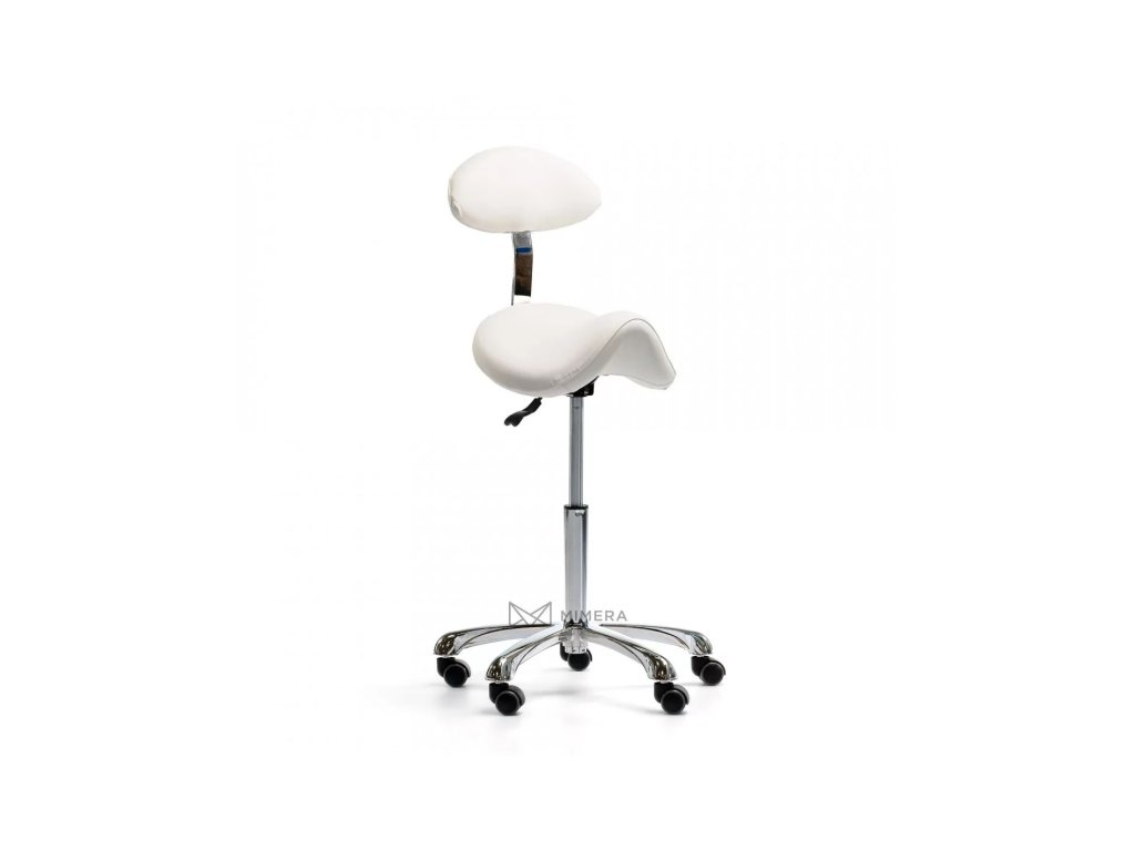 Ergonomický a elegantní design židle NORA se sedadlem ve tvaru sedla a oválným opěradlem, které zaručují maximální pohodlí. Nastavitelná výška je pomocí plynového pístu a nastavitelné je i opěradlo ve dvou stupních. Bílé čalounění ve vysoké kvalitě z PU materiálu se snadno čistí. Stabilitu židle zaručuje chromovým základna s 5 kolečky.