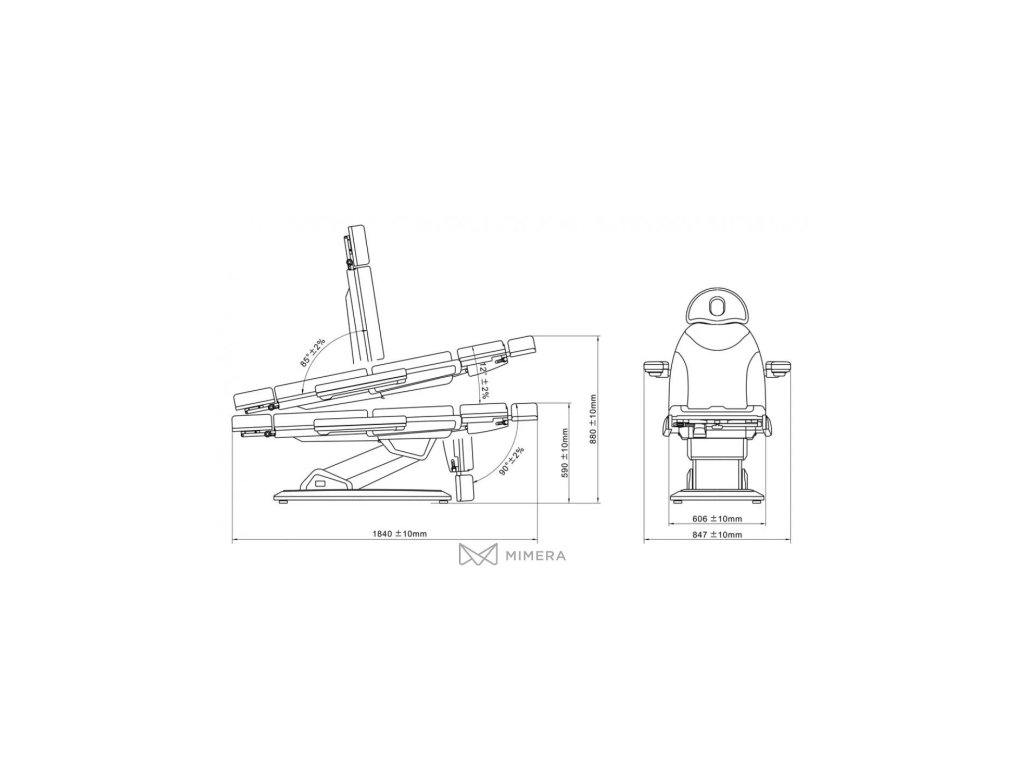 - 4 spolehlivé motory pro nastavení výšky (59-88cm), opěrky chrbta (0 ° ~ + 85 °), náklonu lehátka (0 ° ~ + 12 °) a nožní části (-90 ° ~ 0 °)