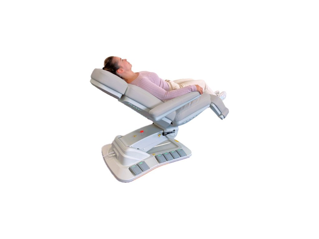 Dalšími podstatnými výhodami tohoto lehátka jsou jeho nízká minimální výška a možnost otáčení lehátka v obou směrech pod úhlem (~120° až +120°), což umožňuje komfortní usazení i pro nižší nebo starší klienty. RAMON DELUX PLUS E4 je vybaven čtyřmi motory, které umožňují nastavit výšku lehátka, sklon opěradla, sklon sedadla (kolébky) a nožní části. Jeho výjimečnost spočívá v tom, že jej lze polohovat různými způsoby podle toho, který vám momentálně více vyhovuje - pomocí tlačítek zabudovaných do opěradla a sedadla, pomocí pedálového systému integrovaného do základny nebo pomocí ručního ovladače, který je součástí balení.