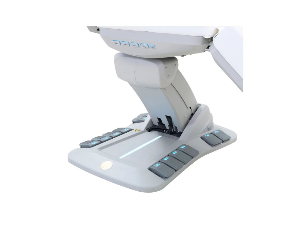 Je vybaveno extra měkkým vícevrstvým polstrováním s PU mikrokůží a hladkým vzorem (Microgoove), které vašim klientům vykouzlí úsměv na tváři. K jejich komfortu jistě přispěje i zabudovaná funkce vyhřívání, která zpříjemní jakoukoliv proceduru, a to i v chladných dnech. Ke spokojenosti vašich klientů přispěje také LED osvětlení s měnitelnými barvami, které osvětluje tlačítka, pedály a i podstavu lehátka.