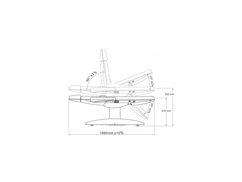- Elektrické ovládání výšky (61-82cm), nastavení sklonu opěradla (0 ° ~ 80 °), úhel sklonu (0 ° ~ 20 °) a úhel podpěry nohy (-45 ° ~ 0 °)
