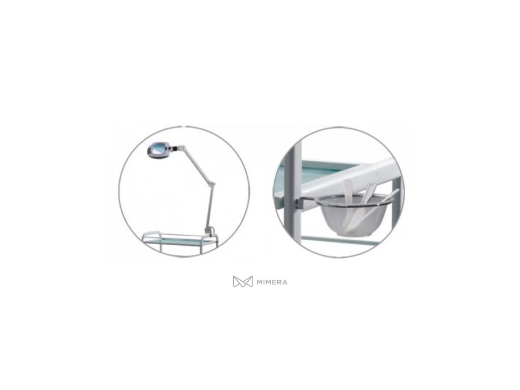 Kozmeticky stolík UNIQUE 2 ponúka štyri sklenené police, ktoré zaručujú optimálne skladovanie malých prístrojov, kozmetiky či akýchkoľvek pomôcok pri práci. Police sú z tvrdeného matného skla s malým logom značky SILVERFOX, pričom druhá polica je vysúvateľná. Stolík disponuje držiakom na upevnenie lampy a na bočnom ráme je aj možnosť uchytenia misky.