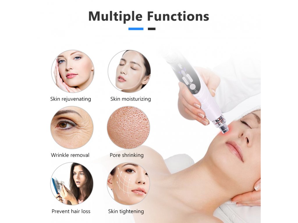 - Tradiční mezoterapie se zaměřuje na problémové oblasti mikroinjekcemi léků, vitamínů, minerálů a aminokyselin. Vysokofrekvenční mezoterapie bez jehly má za cíl poskytnout stejné výsledky, ale bez bolesti spojené s injekcemi k vyřešení různých problémů způsobených nedostatkem vlhkosti, jako je povislá kůže, tmavé skvrny, vrásky, akné a drsnost, aby byla pokožka hladká, měkká, jasná a hydratovaná. 2. EMS mikroproud stimuluje svaly k vypnutí pokožky, zrychlení metabolismu pokožky, zvýšení elasticity a podpoře absorpce živin. 3. RF proniká do hluboké pokožky, vytváří teplo na podporu krevního oběhu a metabolismu, urychluje kontrakci a regeneraci kolagenu pro utažení pokožky, snížení vrásek a zvýšení elasticity.