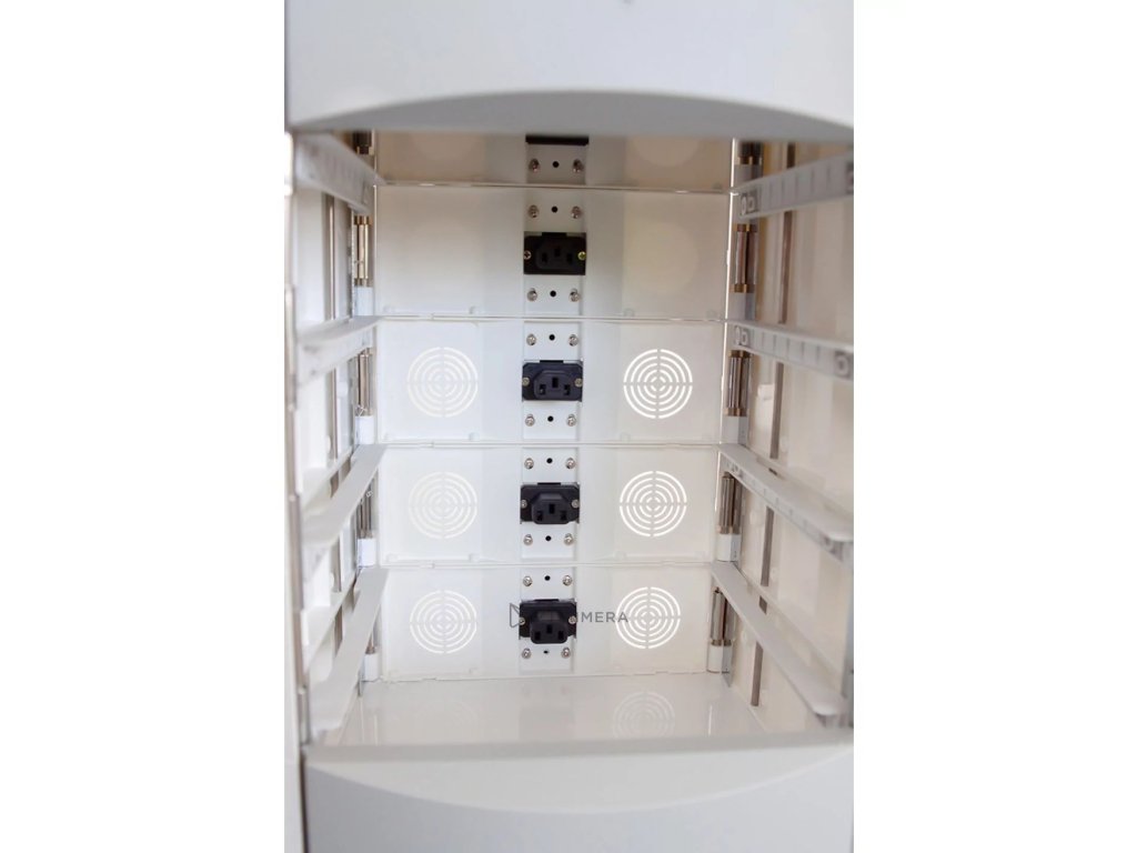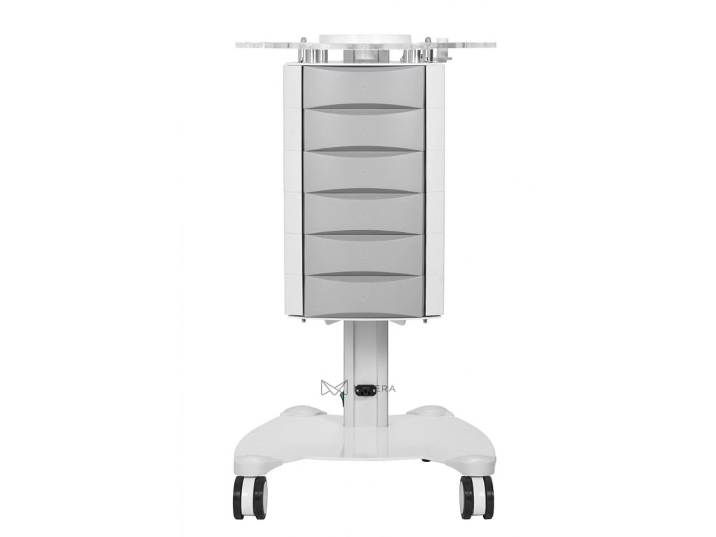 Na horní část kosmetického stojanu lze upevnit digitální napařovač WITTY a ve spodní části stojanu je možné přímo do zásuvky napojit 7 L ohřívač ručníků. Kosmetickou lampu s lupou, která se dá také upevnit na horní část stojanu, si můžete vybrat z naší nabídky. Stojan má šest odnímatelných otvorů se zástrčkami pro kosmetické přístroje, takže stojan můžete přizpůsobit svým potřebám. V naší nabídce najdete sérii 9 kosmetických přístrojů.