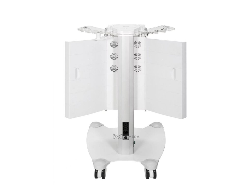 Zadní část stojanu disponuje elektrickou zástrčkou na napájecí kabel a 2 elektrickými zásuvkami pro kosmetické přístroje.
