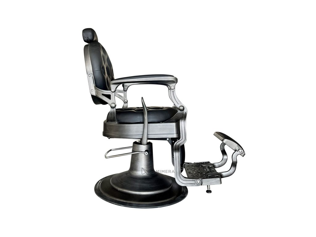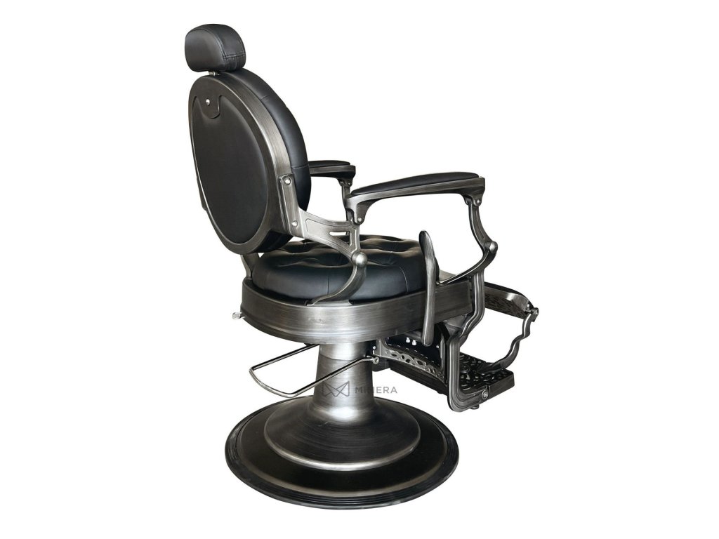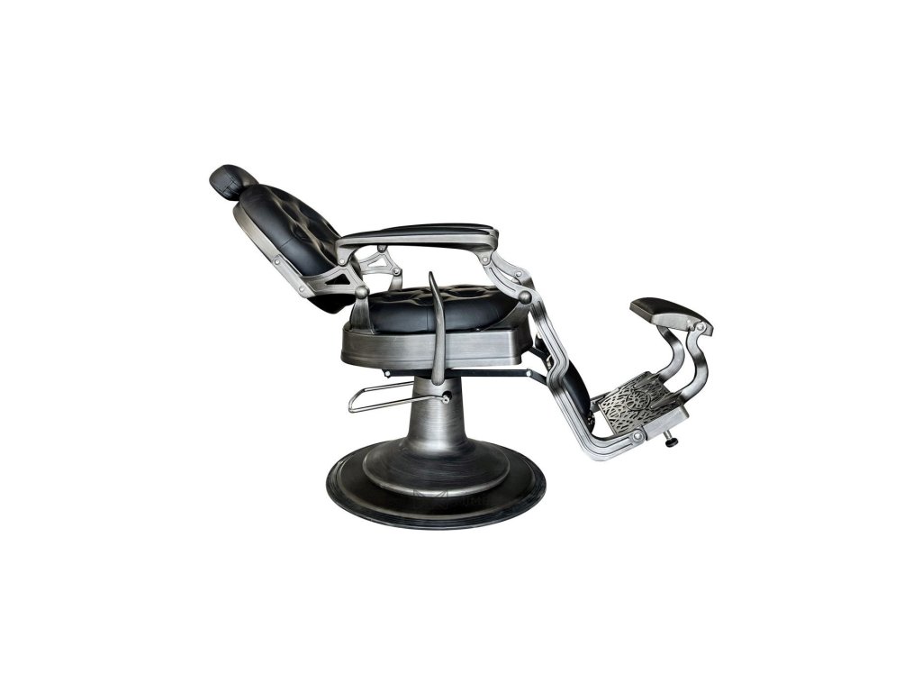 RETRO barber kreslo RENOIR GREY je skutečným mistrovským dílem. Její masivní tělo z nerezové oceli ve špinavě šedé barvě s velkou pevnou základnou je mimořádně stabilní a dobře vyvážené.