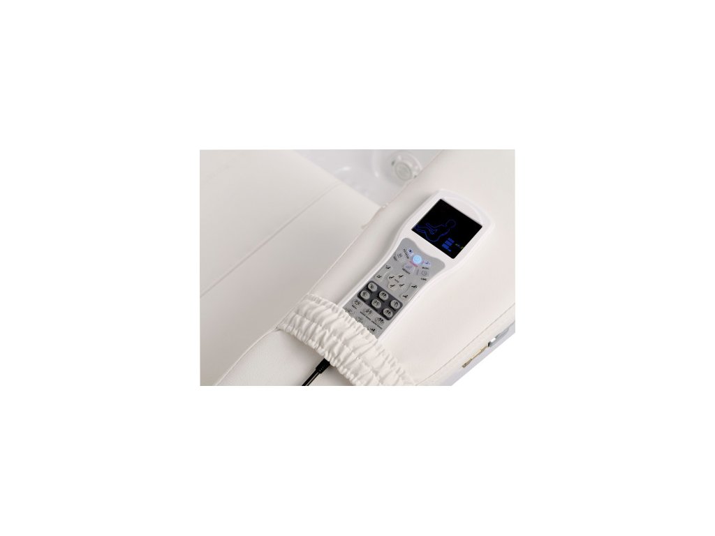 Vysoce komfortní wellness pedikérské SPA křeslo s funkcí masáže. Je vybaveno 2 motory pro ovládání sklonu opěradla a posunu sedadla dopředu a dozadu. Výšku nožní podpěry lze ručně nastavit. SPA křeslo je vybaveno LED světly, vypouštěcím čerpadlem, vodovodním kohoutkem. Otočné područky usnadňují přístup a obsahují misku na manikúru. Opěradlo poskytuje Shiatsu masáž a sedadlo masáž pomocí tlaku vzduchu s časovačem. Součástí balení je mp3 hudební přehrávač s konektorem pro USB a SD karty.