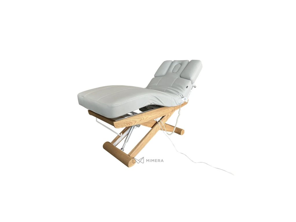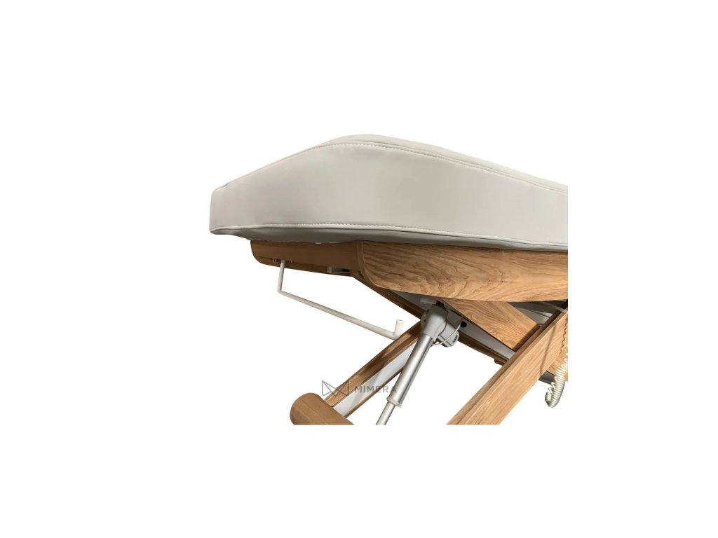 Robustní kovový rám s povrchovou úpravou z přírodního dřeva má v jedné části základny integrovaná kolečka, která usnadňují v případě potřeby pohodlnou manipulaci s lehátkem. Pohodlné PU polstrování v kvalitním provedení z mikrokůže je nenáročné na údržbu. Lehátko lze zatížit až 175 kg.