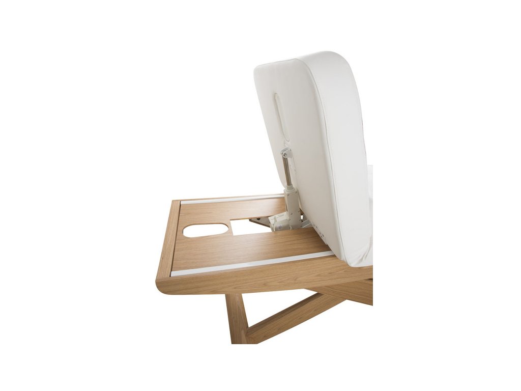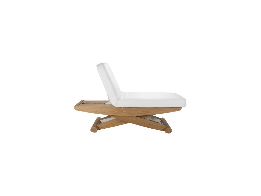 Robustní kovový rám s povrchovou úpravou z přírodního dřeva má v jedné části základny integrovaná kolečka, která usnadňují v případě potřeby pohodlnou manipulaci s lehátkem. Pohodlné PU polstrování v kvalitním provedení z mikrokůže je nenáročné na údržbu. Lehátko lze zatížit až 175 kg.