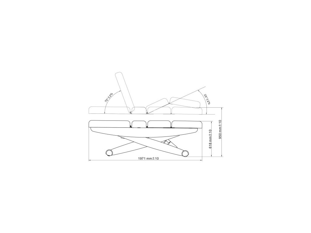 - 3 tiché motory pro ovládání výšky (61-95cm), opěrky (0-70°) a nožní části (0-25°)