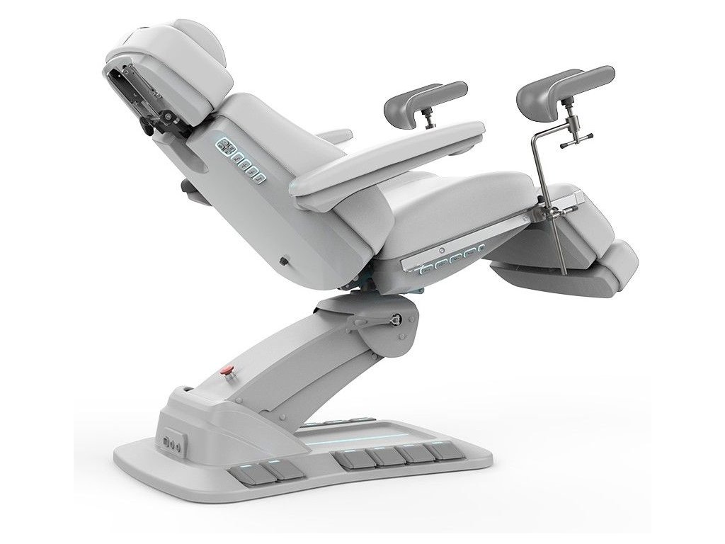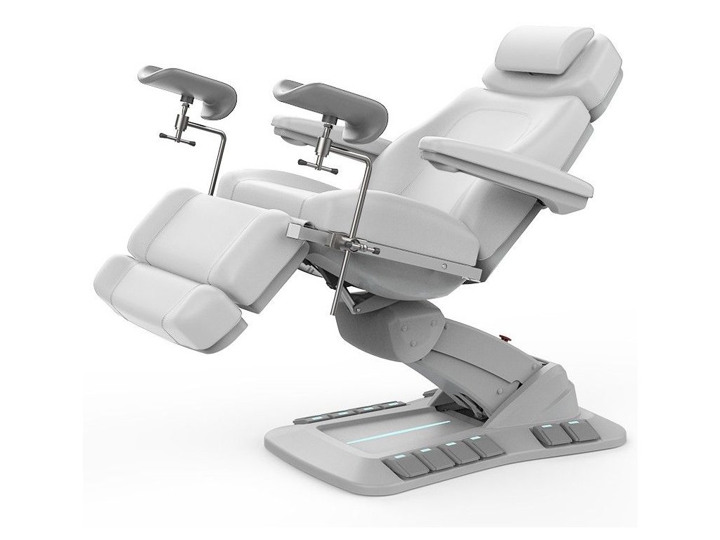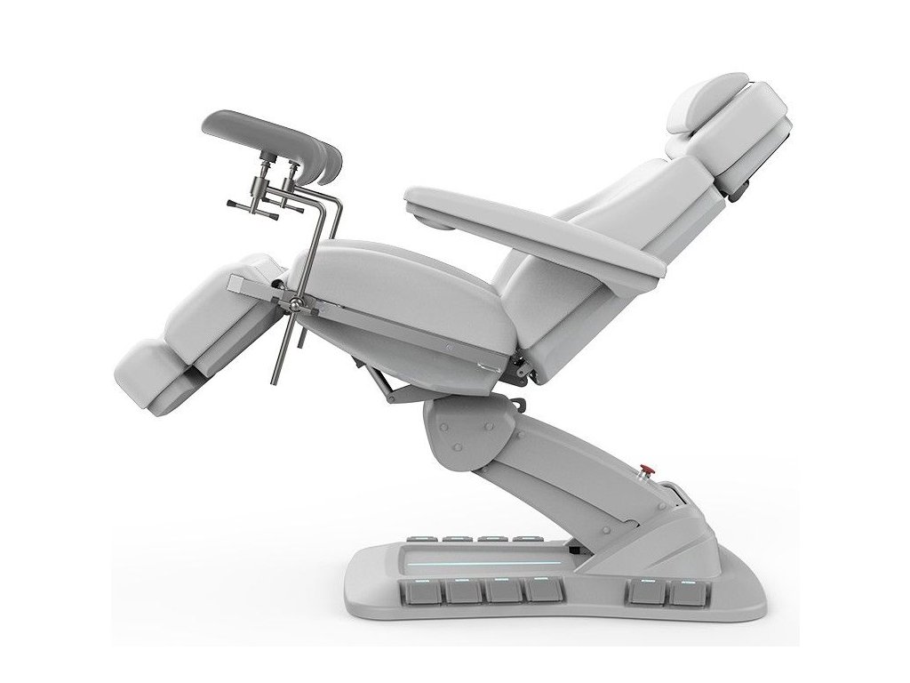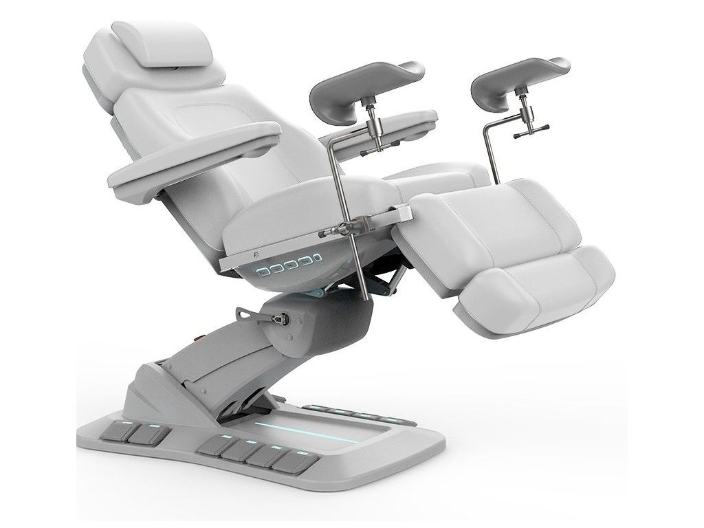 Toto lehátko se 4 motory umožňuje plynulé nastavení výšky, sklonu opěradla, sedadla i nožní části. Otočná konstrukce ±120° poskytuje lékaři dokonalou flexibilitu a přístup z obou stran.